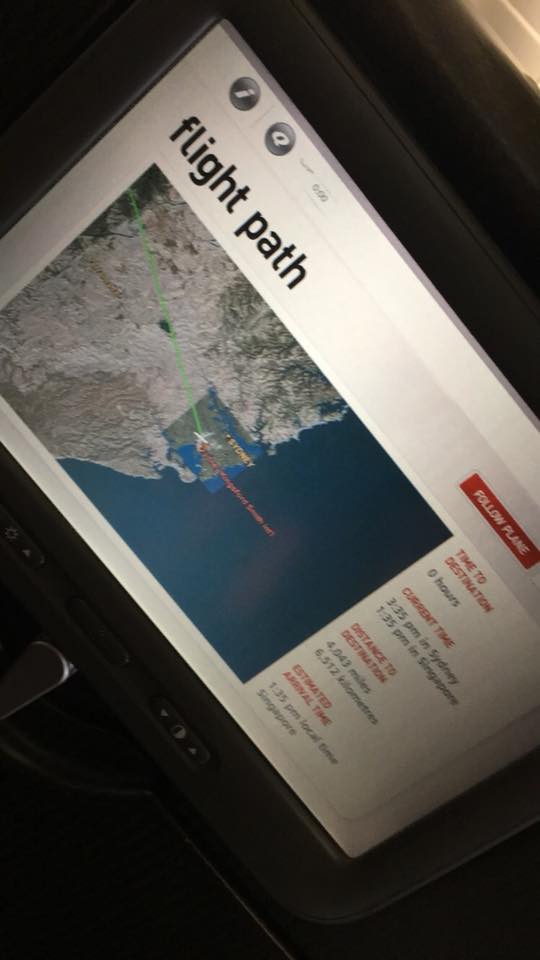 I’m watching the countdown on the tv screen as to when we are likely to touch down in London. Breakfast was being served and that’s the best sign that we’re nearly there!