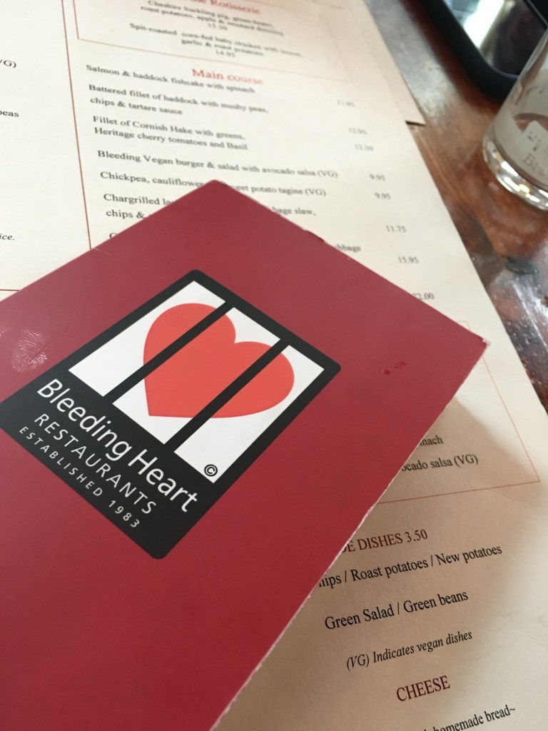 There are many people with dogs, umbrellas and winter woolies. As I look down the lane way there are street markets going on as well. There’s a beautiful bbq smell wafting in the air and making me very hungry. So we decide to head to The Bleeding Heart which has 3 different dining options contained within it’s own little precinct.