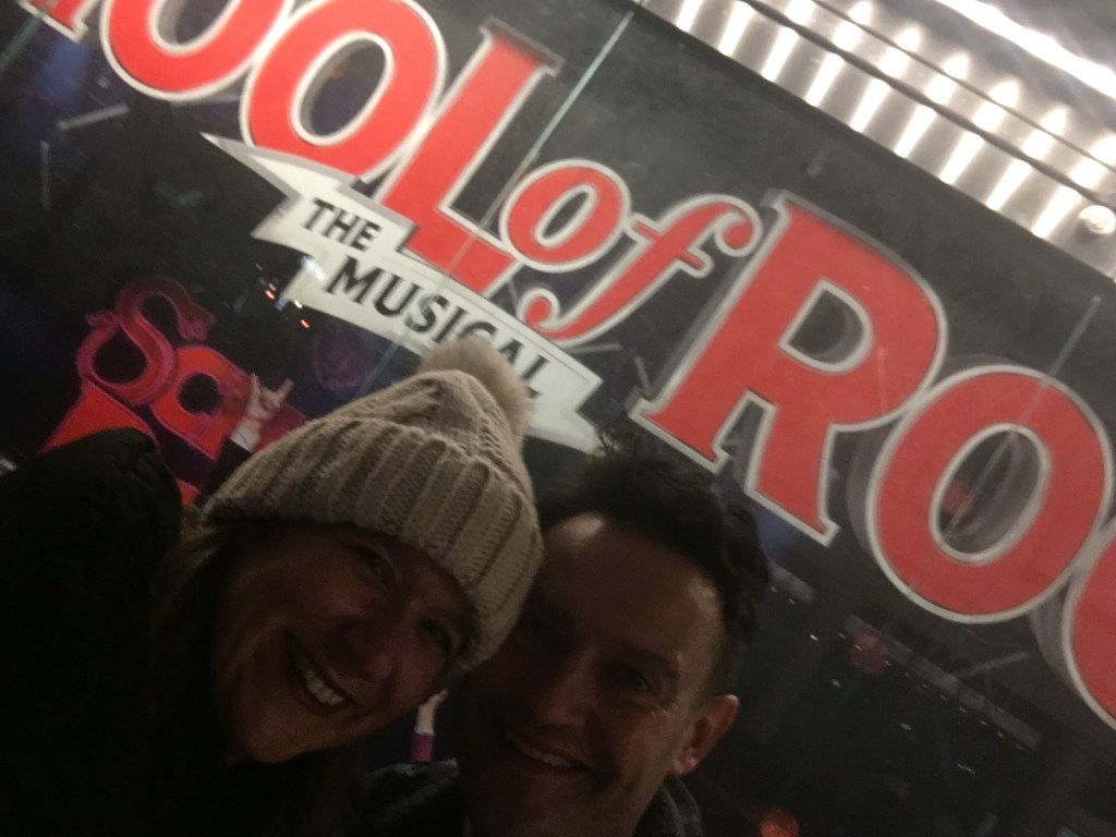 We rug up and grab an uber down to Lynne Gillian Theatre in Drury Lane. Not a muffin man in sight though. There is a big line up to get inside and we thought we’d grab a drink nearby while we wait for it to start. Because the production of School of Rock is quite family orientated, there are many kids about too.