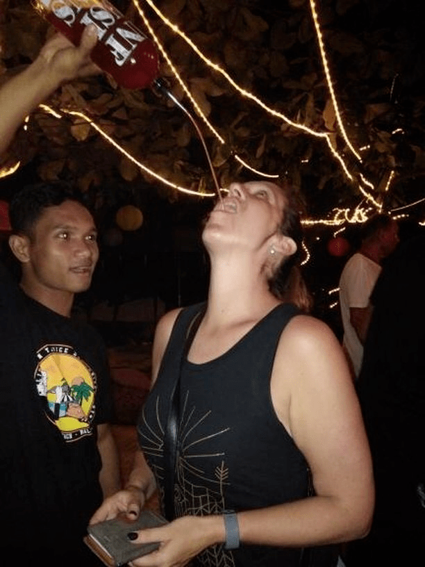 Eventually Bam arrives and I’ve gotten to chatting with a solo traveler next to me. A married police officer from Queensland looking for a good time in Bali – oh boy do you have the wrong girl. Jamei has gone into La Favela with Bam and Lian and I just let her know I’ll see her in there. I finish up my drink and conversation with Anthony and head into the club. It’s shoulder to shoulder PACKED!! All I can think of is that it’s going to be very hard to find Jamei. But I know she is in good hands with locals.