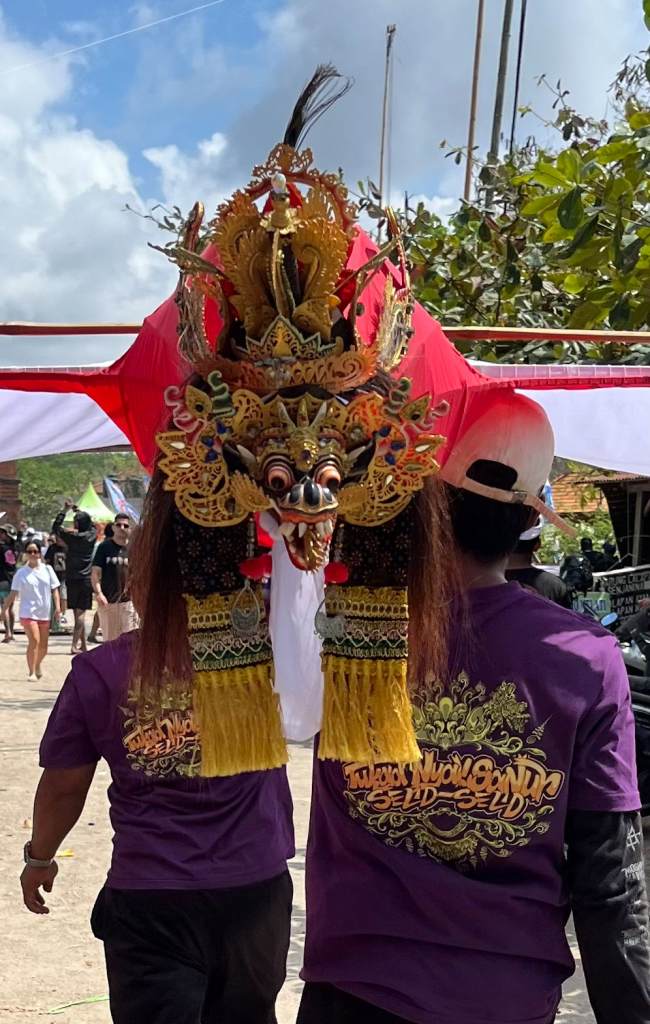 The kite festival is not your average string-and-breeze operation, but a full-on competition. Huge kites launched from the car park, dragged down the beach by a team of runners like they were storming the sky. No clue how winners are crowned, possibly whoever survives the tangled strings. Speaking of survival, Matthew and I (famously clumsy) managed to dodge kite wires, crowds, and sand ambushes. Victory! The Balinese, true to form, were kind and patient and helped us navigate the chaos.