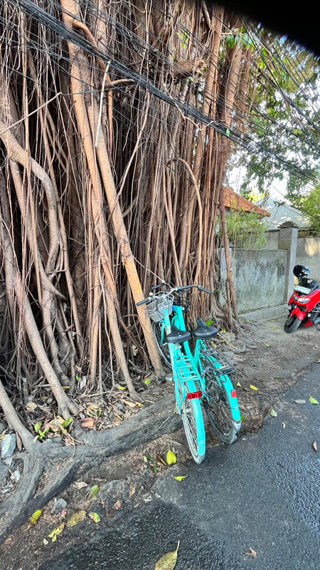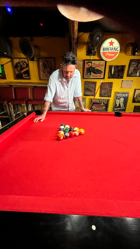 After our daily stop to stock up on supplies for the villa, we ride down the road to play a few rounds of pool, which started off as a casual game and quickly turned into a weird exchange. Almost as weird as the makeshift bike rack we locate to keep our bikes ‘safe’ while we weave through a different part of Sanur in the hunt for one of the bars I’d found with a pool table. I love how simple things are here